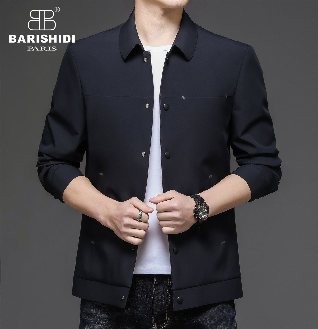 Áo khoác kaki lụa khuy bấm - Xanh Đen - AK22-2126-2