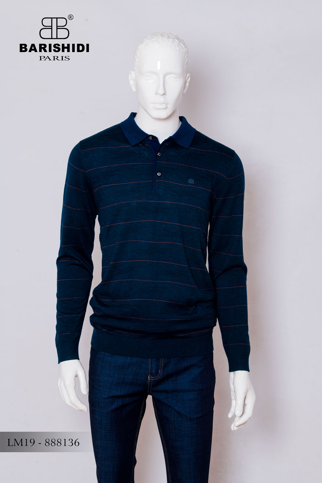 Áo Len mỏng cổ bẻ kẻ ngang mảnh 4 vạch nổi - Xanh - LM19-888136-01